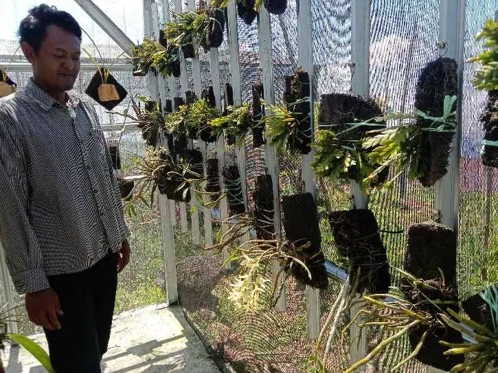 "Perawatan tanaman anggrek itu tidak mudah, tapi juga tidak sulit. Ada yang tumbuh dengan baik, beberapa ada juga yang mati karena cuaca yang tidak mendukung. Kami biasanya menyiram anggrek-anggrek ini setiap tiga hari sekali," ucap Sarjianto.